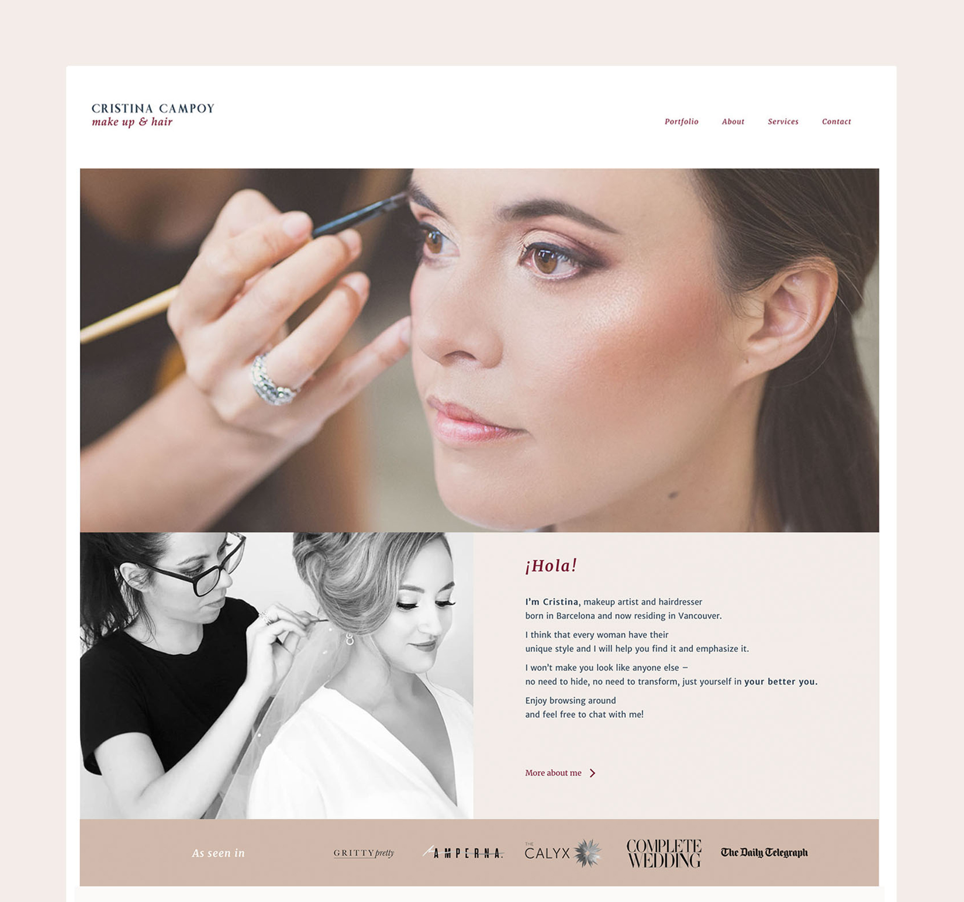 Cristina needed her own brand identity and a webpage aligned with her personality, skills and style to showcase her portfolio, including her more recent work.